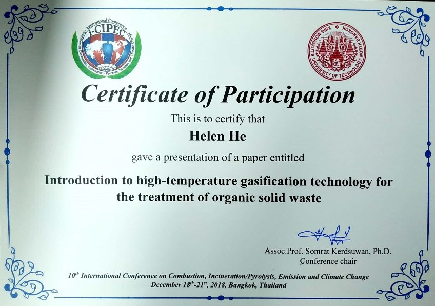 2018年12月18日至21日,綠潤科技團隊隨院士工作站盛宏至老師參與“第十屆燃燒、焚燒/熱解、排放與氣候變化國際會議(I-CIPEC)”。