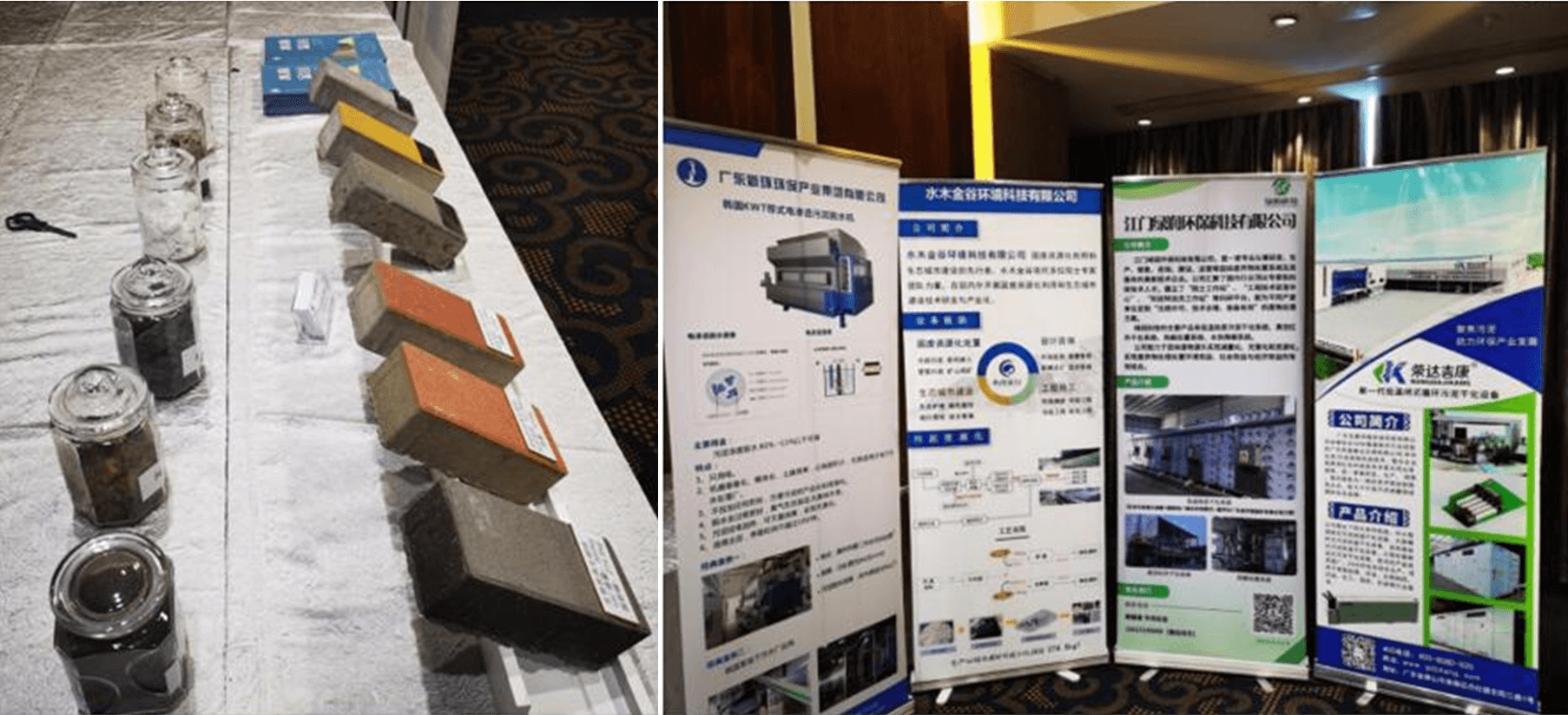 會(huì)議期間,部分技術(shù)單位也在會(huì)場(chǎng)展示了其研發(fā)的污泥處理處置相關(guān)技術(shù)、設(shè)備情況及污泥資源化利用后的產(chǎn)品樣品。